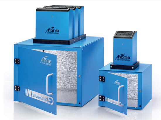 Chambre de polymérisation compact LED-UV. Le LED Cube 100 IC est une chambre d’irradiation compacte pour une utilisation en laboratoire ou pour de la production manuelle.